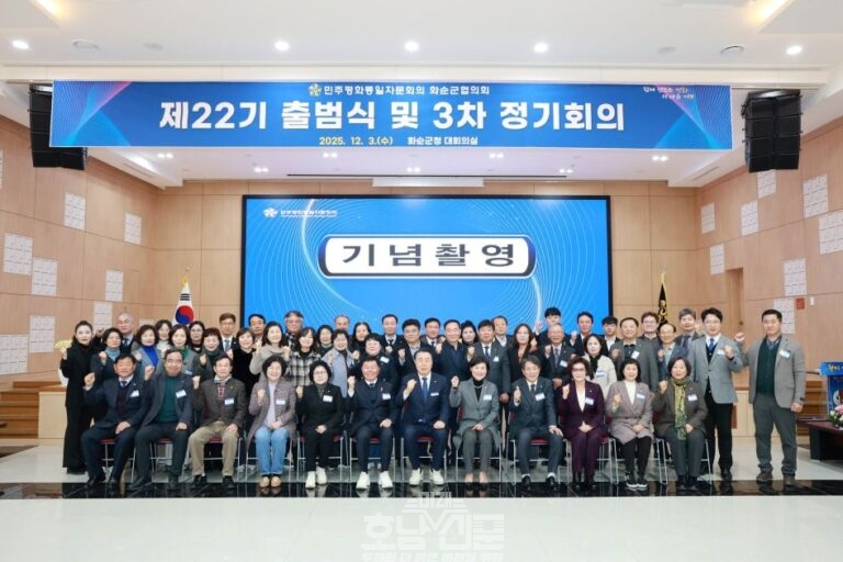 지난 12월 3일 화순군청 대회의실에서 ‘제22기 민주평화통일자문회의 화순군협의회’ 출범식과 3분기 정기회의가 열렸다. 이번 22기는 총 60명의 자문위원으로 구성됐으며, 지역사회와 함께하는 평화통일 공감대 확산을 목표로 본격적인 활동에 나선다. ■ 구복규 화순군수
