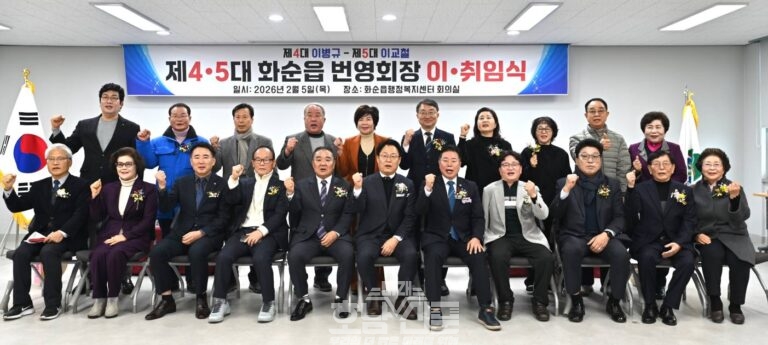 ...화순읍 번영회는 지난 5일 화순읍 행정복지센터 3층 회의실에서 ‘제4·5대 화순읍 번영회장 이·취임식’을 개최했다고 밝혔다. 이날 행사에는 번영회 회원을 비롯해 임지락 도의원, 조영일 화순읍장, 조준성 화순농협