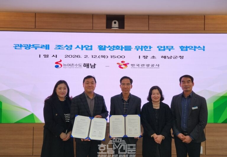 해남군이 문화체육관광부와 한국관광공사가 주관하는‘관광두레 조성사업’공모에 선정됐다. 이에따라 지난 12일 한국관광공사와 사업 활성화를 위한 업무협약(MOU)을 체결했다.. 관광두레는 지역 주민이 주도적으로 관광사업체를 운영하며 일자리와 수익을 창출할 수 있도록 지원하는 사업으로, 관광객의 소비가 지역 발전으로