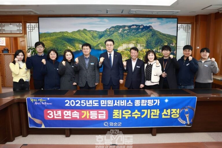 화순군(군수 구복규)은 19일 행정안전부와 국민권익위원회가 공동 주관한 ‘2025년 민원서비스 종합평가’에서 최우수 등급인 ‘가’ 등급을 받아 3년 연속 최우수기관으로 선정됐다고 밝혔다. 이번 평가는 중앙행정기관, 광역지방자치단체, 교육청,