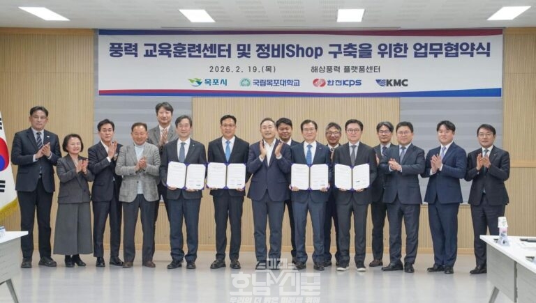 목포시는 지난 19일, 해상풍력 플랫폼센터에서 한전KPS, KMC해운(주), 국립목포대학교와 함께, 목포신항 내 풍력교육훈련센터 및 정비shop 구축을 위한 업무협약을 체결했다고 밝혔다. 이번 협약은 목포신항을 중심으로 해상풍력 유지관리 서비스 산업 생태계를 조성하고, 풍력