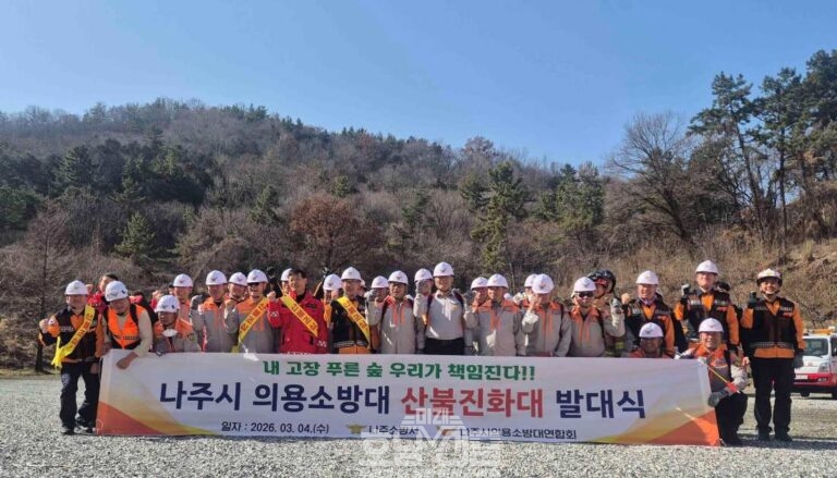 나주소방서(서장 신향식)는 최근 전국적으로 산불 발생이 증가함에 따라 산불 대응 역량 강화를 위해 나주시 문화예술회관 공터에서 산불진화대 발대식을 개최했다. 이번에 발대한 나주소방서 “의용소방대 산불진화대”는 총