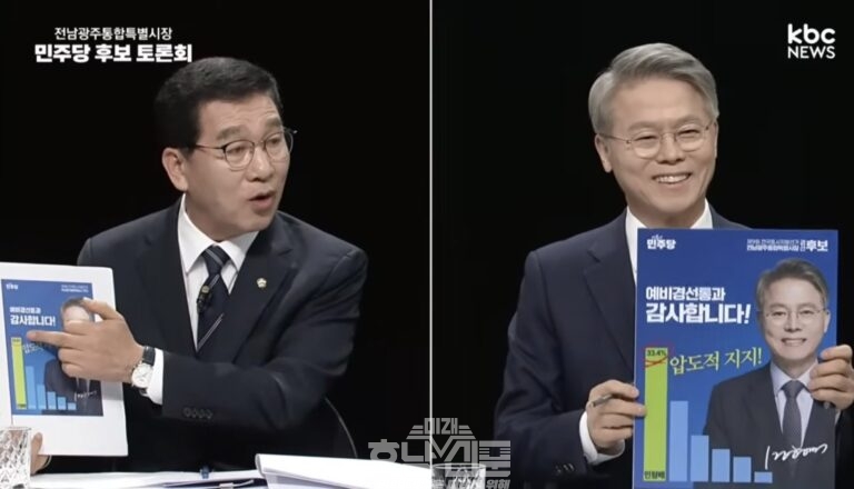 ...더불어 민주당 전남광주특별시장 신정훈 경선후보는 27 일 자신의 페이스북에 글을 올리고 , 지난 25 일 진행된 TV 토론 결과를 짚으며 ” 거짓 여론조사로 유권자를 기만한 민형배 후보에 대한 민주당의