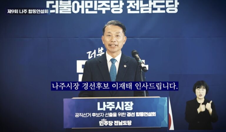 ...더불어민주당 나주시장 경선에 출마한 이재태 후보가 합동연설회에서 민주당의 정체성과 나주 시정의 변화를 강조하며 지지를 호소했다. 이재태 후보는 연설에서 “호남에서