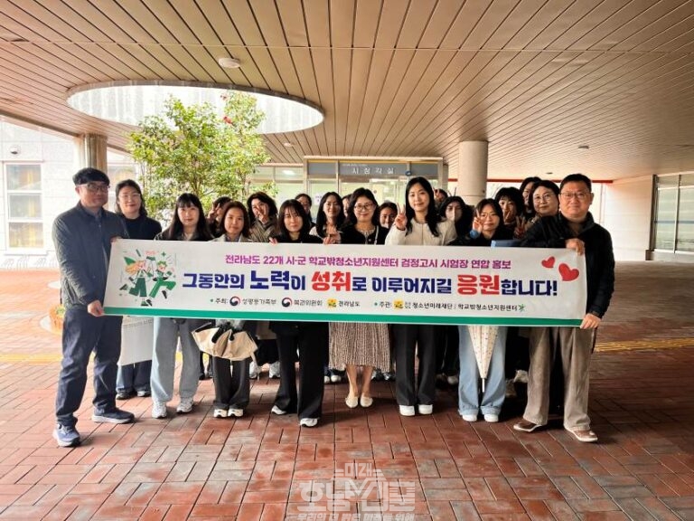 (재)전라남도청소년미래재단 학교밖청소년지원센터(센터장 국형진)는 지난 4일 실시된 ‘2026년 제1회 초·중·고등학교 졸업 학력인증 검정고시’에 응시한 도내 학교 밖 청소년들을 응원하기 위해 시험장을 방문했다고 밝혔다. 이번 응원은 전라남도 내 22개 시·군 학교밖청소년지원센터가 연합하여