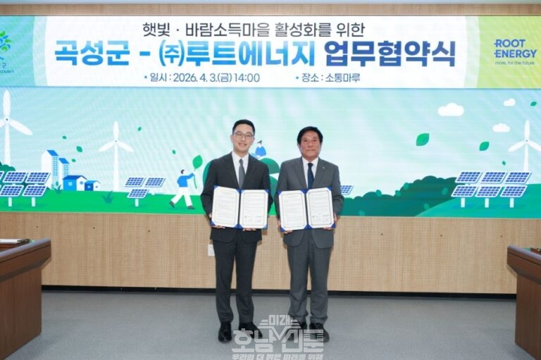 전남 곡성군이 주민이 직접 참여하고 수익을 공유하는 재생에너지 모델 확산에 본격적으로 나섰다. 군은 지난 3일 재생에너지 전문기업 ㈜루트에너지와 ‘햇빛·바람소득마을 활성화를 위한 업무협약(MOU)’을 체결하고, 주민 주도형 에너지사업 추진을 위한 협력체계를 구축했다고