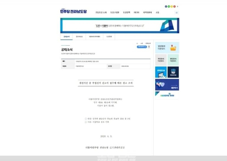 더불어민주당 화순군수 경선을 앞두고 본경선에서 탈락한 문행주 후보가 윤영민 후보에 대한 지지를 공식 선언했다. 8일 발표된 1차 경선 결과 화순군수 경선은 과반 득표자가 나오지 않으면서 윤영민 후보와 임지락 후보의 결선