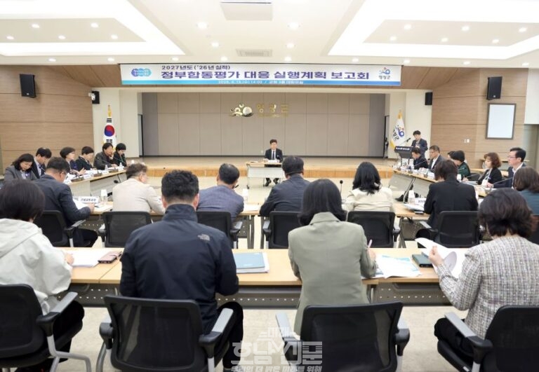 영광군은 지난 15일 군청 대회의실에서‘2027년도(2026년 실적) 정부합동평가 대응 실행계획 보고회’를 개최하고, 지표별 추진상황 점검과 우수 시·군 진입을 위한 대응 전략을 논의했다고 밝혔다. 이날 보고회에서는 부서별로 총 95개 정량·정성 지표에 대한