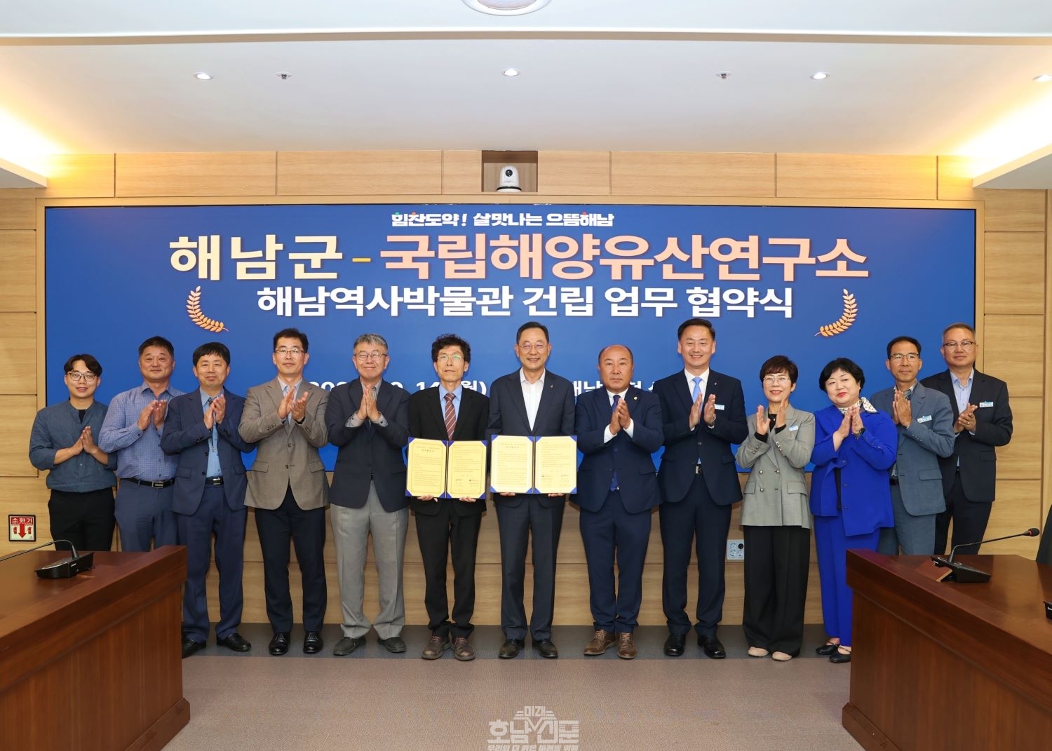 군은 14일 명현관 군수, 국립해양유산연구소 김성배 소장 등 관계자 20여명이 참석한 가운데 해남군 문화유산 보존과 활용, 해남역사박물관 건립과 운영 수행 협력을 위한 업무협약을 체결했다.