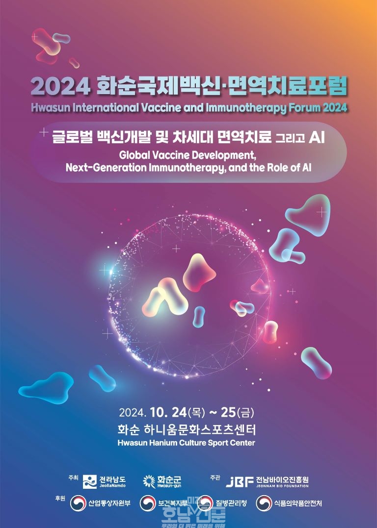화순군(군수 구복규)은 오는 10월 24~25일(2일간) ‘2024 화순국제백신·면역치료 포럼’(이하 포럼)을 화순 하니움문화스포츠센터에서 개최한다.