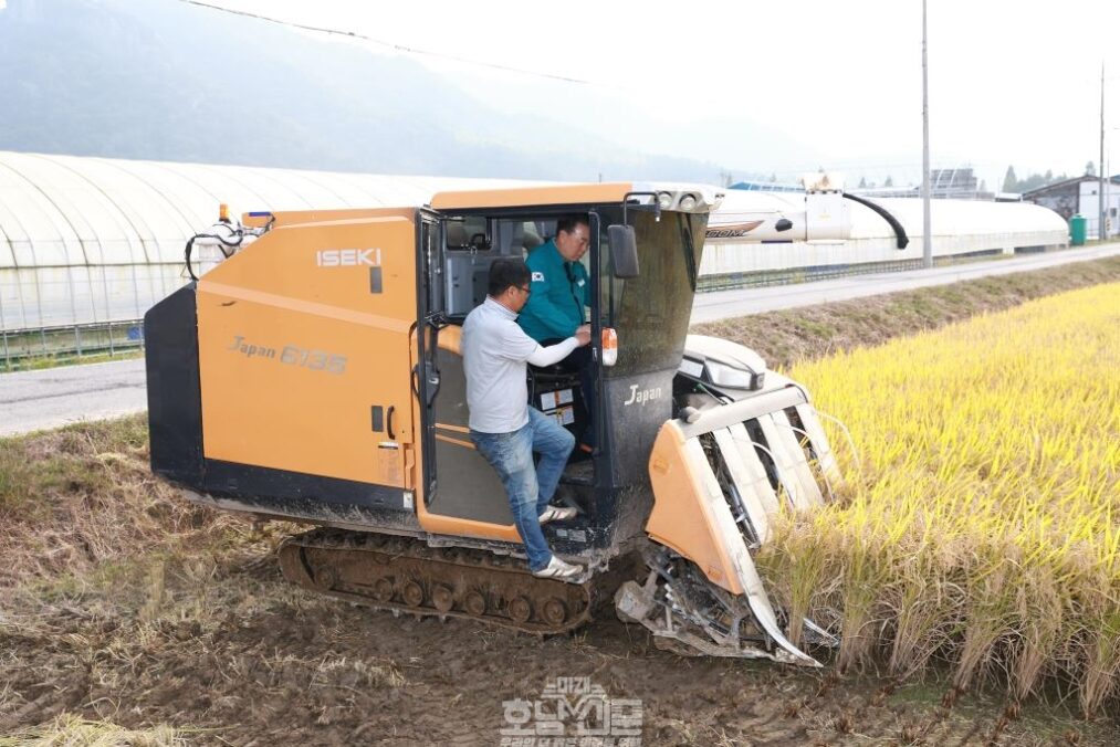 구복규 군수는 벼 수확 농가를 방문해 직접 콤바인을 운전하며 벼 베기를 시연하는 등 현장에서 농민들과 함께 수확의 기쁨을 나눴다.