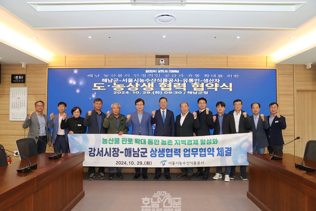 해남군은 29일 군청 상황실에서 서울시농수산식품공사와 해남농산물 안정적 공급과 유통 확대를 위한 업무협약을 체결했다.