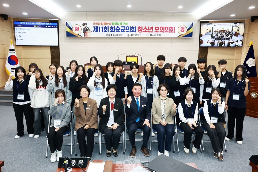 화순군의회(의장 오형열)는지난 31일 본회의장에서 화순중학교 학생 26명이 참여한 가운데 ‘제11회 청소년 모의의회’를 개최했다.