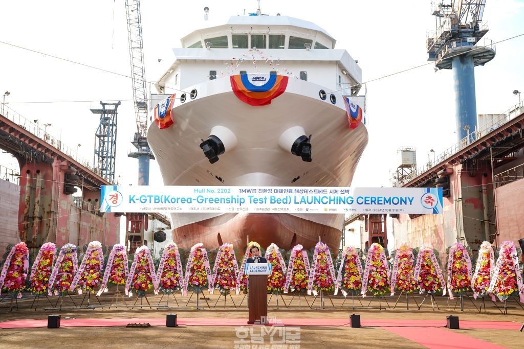 ▼ 세계 최초 친환경 연료시스템 해상실증선박(K-GTB) 진수