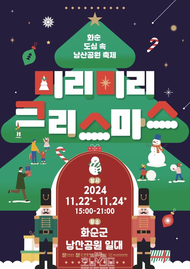 (재)화순군문화관광재단(이사장 구복규)은 오는 11월 22일부터 24일까지 3일간 화순 남산공원 일대를 주무대로 전국에서 가장 먼저 크리스마스 분위기를 느낄 수 있는 ‘미리미리 크리스마스’ 축제를 개최한다고 전했다.