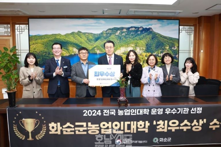 화순군(군수 구복규)은 26일 화순군농업기술센터(소장 류창수)가 농촌진흥청이 주관하는 ‘2024년 농업인대학 운영 우수기관 발표 경진대회’에서 최우수 기관에 선정됐다고 밝혔다.