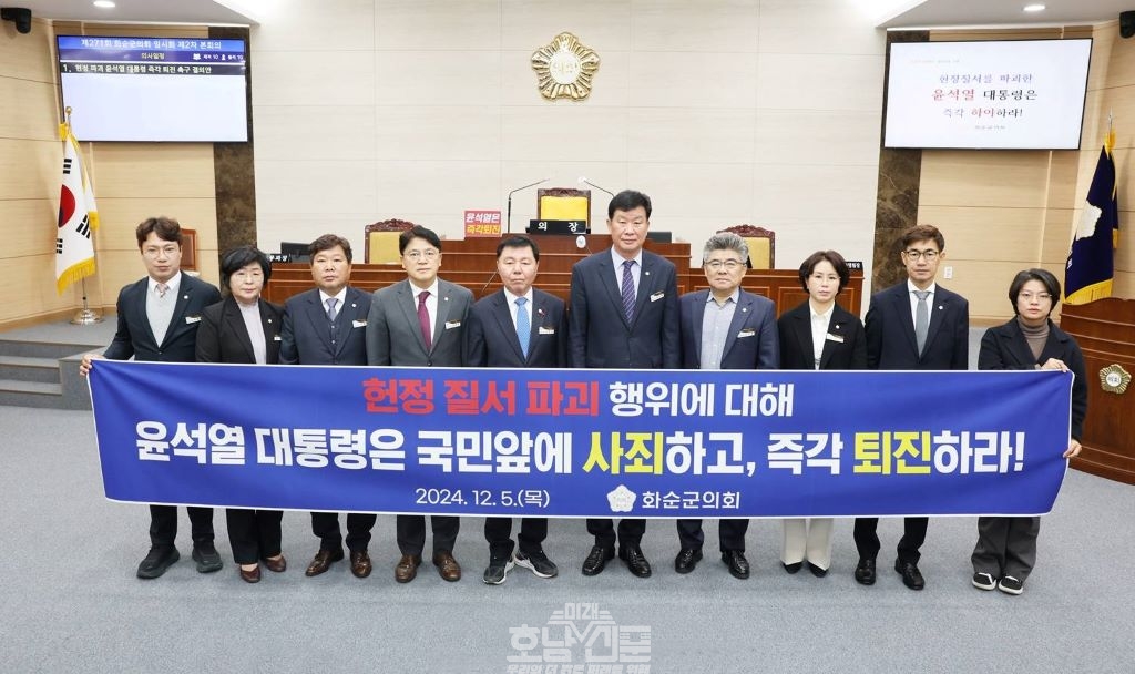 화순군의회가 윤석열 대통령의 비상계엄 선포에 대해 헌법 위반과 민주주의 파괴 행위로 규정하며 강력한 대응에 나섰다.