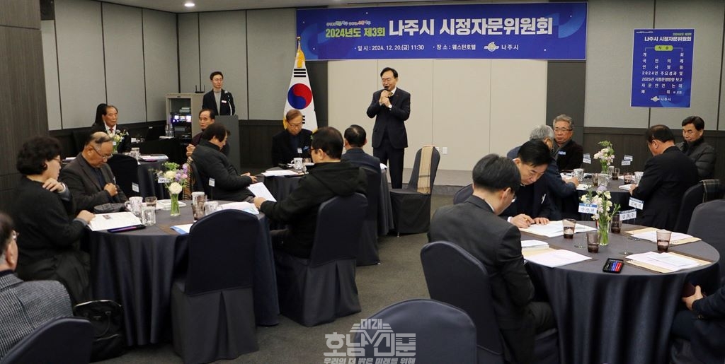 전라남도 나주시(시장 윤병태)는 지난 20일 빛가람동 웨스턴호텔에서 시정자문위원 13명이 참석한 가운데 ‘제3회 시정자문위원회’를 개최했다고 22일 밝혔다.