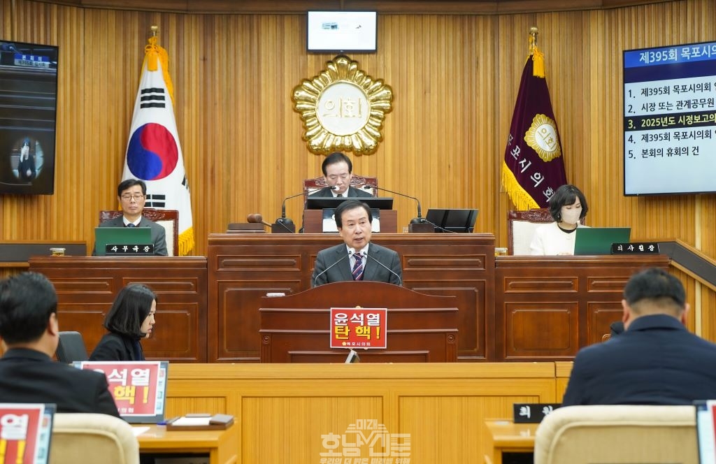 박홍률 목포시장이 13일 올해 첫 목포시의회 임시회에서 2025년 시정운영 방향을 발표했다.