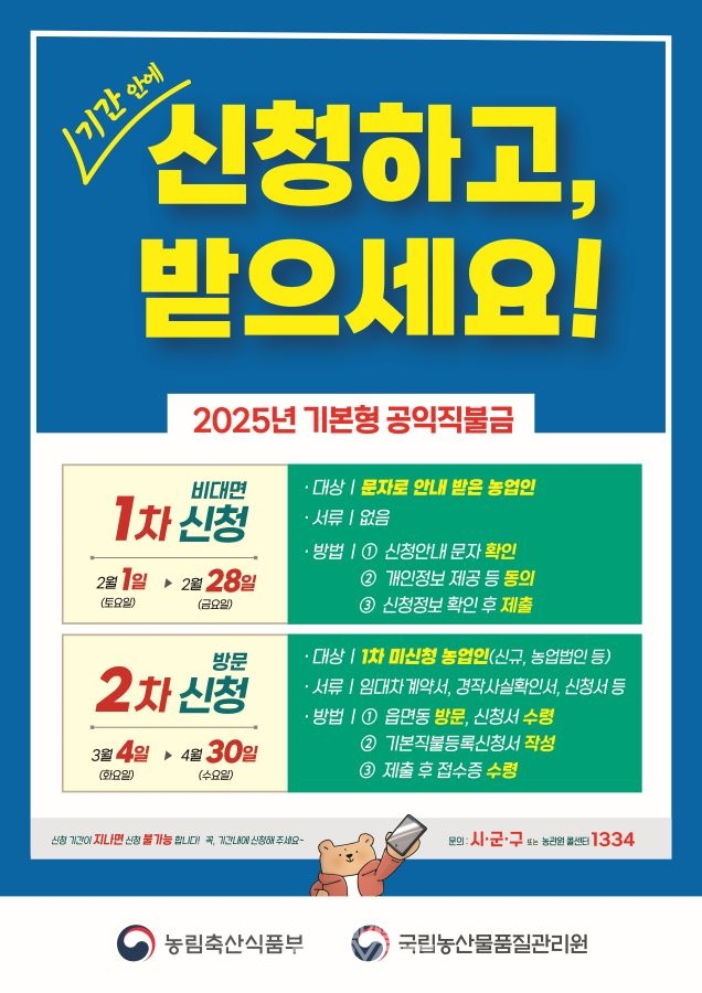 이에 따라 기본형 공익직불금과 기후위기시대 식량안보 강화를 위해 선택형 전략작물 직불금, 저탄소농업 프로그램을 확대 지원할 계획이다.