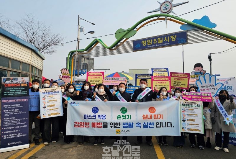 전남도는 설을 앞둔 20일 영암읍 5일시장 일원에서 영암군보건소, 전남도감염병관리지원단 등 50여 명이 참여해 병문안 문화개선 캠페인을 펼쳤다.