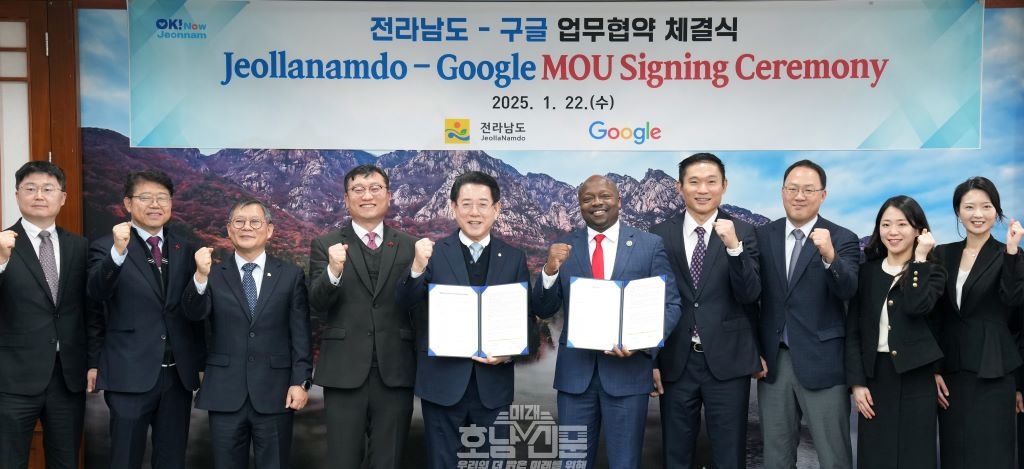 전라남도는 22일 도청에서 글로벌 기업인 구글(Google)과 전남 관광 홍보 및 활성화, 스타트업 교육·훈련 프로그램 운영 등에 협력하기로 업무협약(MOU)을 했다.
