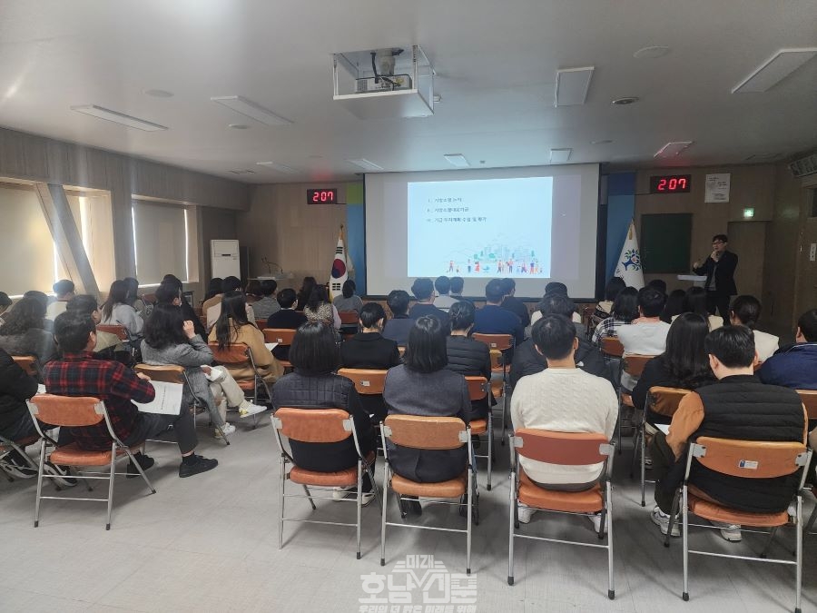특강 후에는 지난해 행안부 지방자치경영대전 지방소멸대응분야 대통령상을 수상한 강진군의 인구감소 대응 우수사례 발표가 이어졌다. 강진군에서 인구 대응 시책으로 활발히 추진 중인 푸소, 반값여행, 농촌빈집 리모델링 등 정책 사례를 강진군 도시재생센터장이 소개해 직원들로부터 큰 호응을 얻었다.