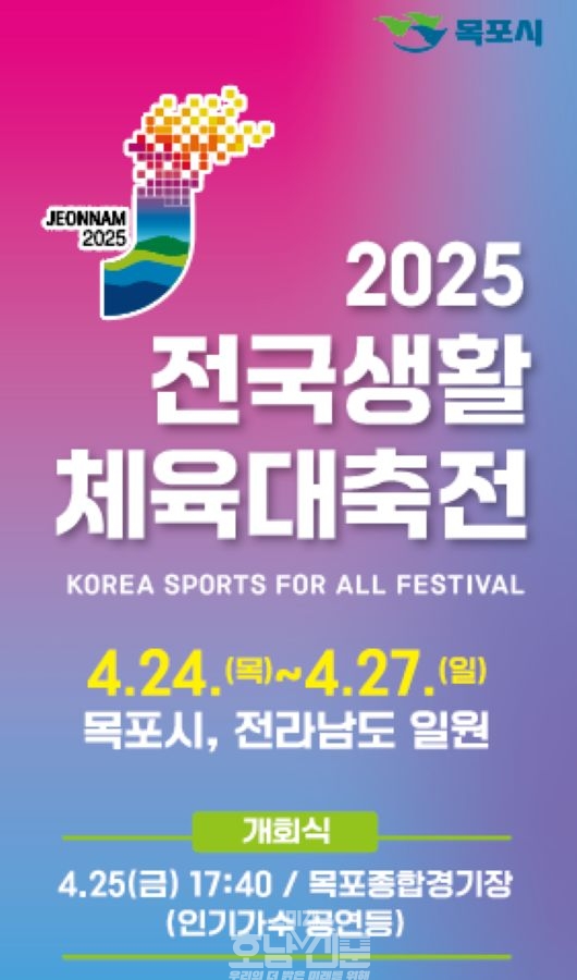 목포시가 2025 전국생활체육대축전을 성공적으로 이끌어갈 자원봉사자 420명을 모집한다.