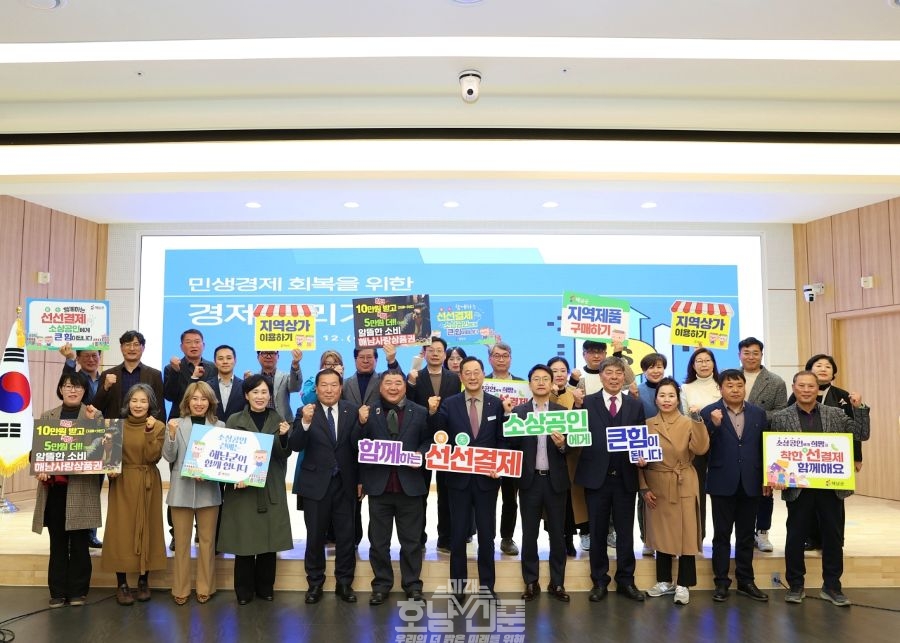 명현관 군수는 “민·관·기업·소상공인이 함께하면 어려운 경제위기를 이겨낼 수 있다”며 “민생경제회복지원금을 가급적 빨리 사용해주기를 바라며 지역상가 이용하기, 우리지역 농수산물 구매하기 등 소비촉진과 더불어 선결제 캠페인에도 적극 동참해주실 것”을 당부했다.