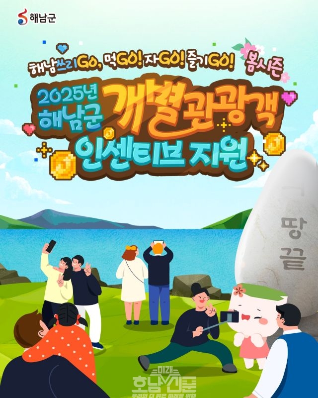 (재)해남문화관광재단은 해남을 방문하는 개별관광객 인센티브 지원 사업‘해남쓰리Go – 먹Go! 자Go! 즐기Go!’을 진행한다.