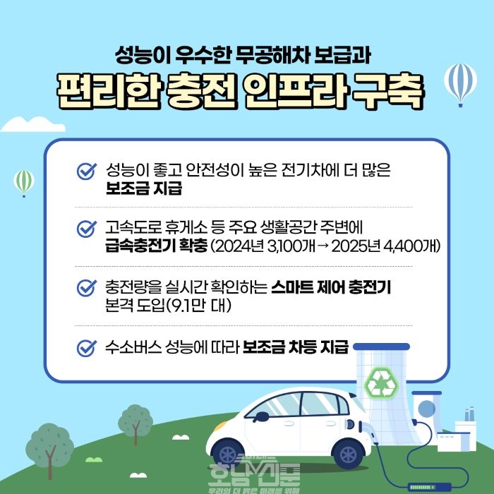 승용차 구매 시 다자녀 가구는 자녀 수에 따라 최대 300만 원, 전기택시는 250만 원, 차상위 이하 계층과 청년 생애 첫 구매자는 국비 지원액의 20%가 추가 지원된다.