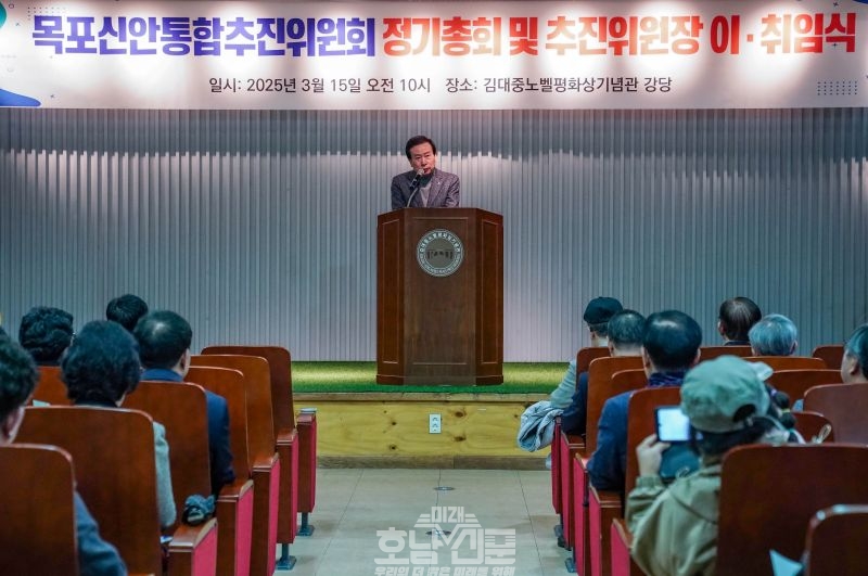목포신안통합추진위원회(이하 통추위)는 지난 15일 김대중노벨평화상기념관 다목적 강당에서 정기총회와 위원장 이·취임식을 개최했다.