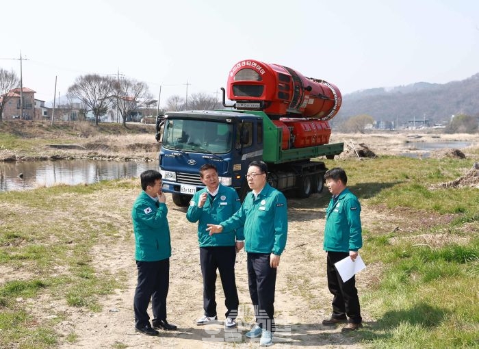 화순군은 철새, 야생동물 서식지 등 주요 하천 방역을 위해 화순천 10km(동면 충의사~ 도곡면 죽청교), 지석천 8km(능주면 영벽정~ 도곡면 평리교) 일대에 원거리용 방제기를 동원하여 하천 방역을 추진 중이다.