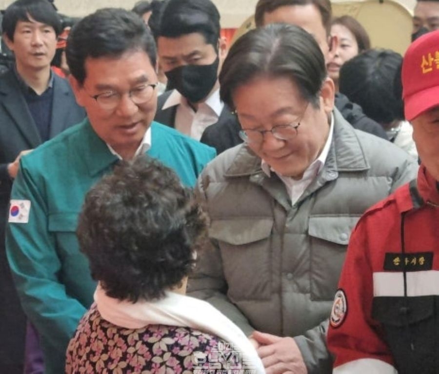 이재명 더불어민주당 대표가 자신의 무죄 판결 직후 경북 안동 산불 피해 현장을 긴급 방문해 지역 주민들을 위로하고, 피해 복구에 적극 나설 것을 약속했다.