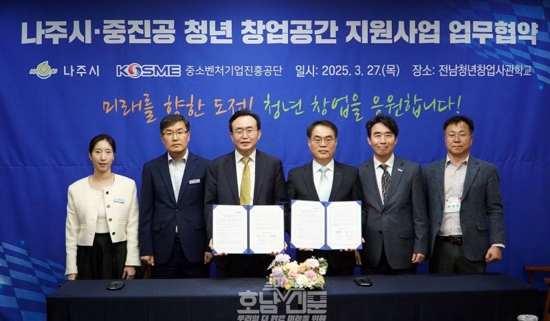나주시(시장 윤병태)는 지난 27일 빛가람동에 위치한 중진공(이사장 강석진) 전남청년창업사관학교와 ‘청년 창업 공간 지원’ 사업 추진을 위한 업무협약을 체결했다고 28일 밝혔다.