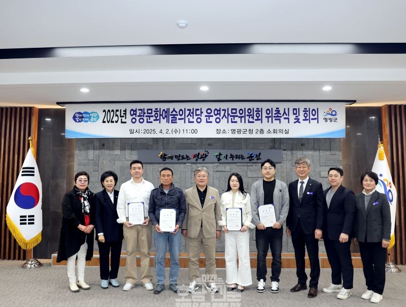 영광군(군수 장세일)은 지난 4월 2일 영광군청 소회의실에서 영광문화예술의전당의 문화 활성화 및 양질의 우수 프로그램 선정을 위한 ‘2025 영광문화예술의전당 운영자문위원회 회의’를 개최하였다.