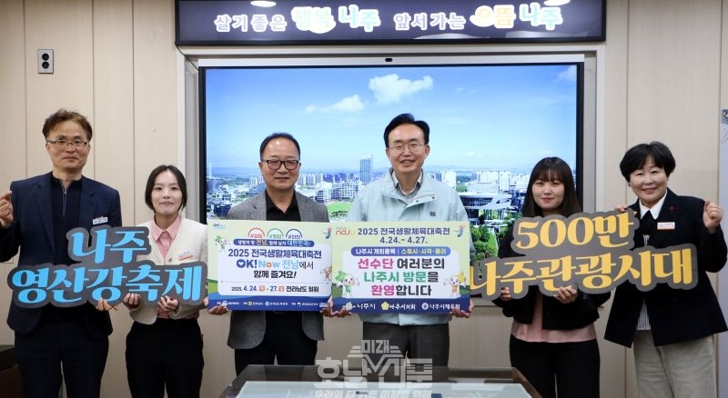챌린지엔 윤병태 나주시장과 체육진흥과 부서장 및 직원들이 참여해 성공적인 대회 개최를 응원하며 2025 나주영산강축제 등을 홍보했다.