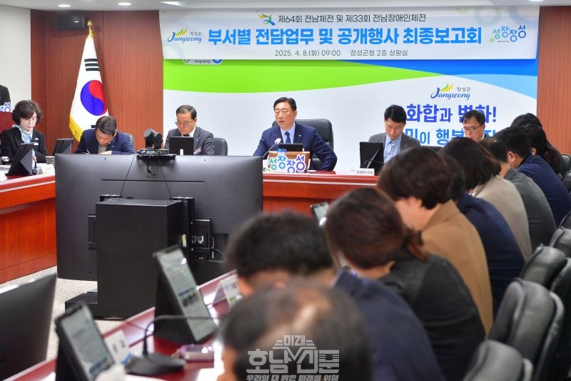 장성군이 양대 체전 준비의 ‘마지막 퍼즐’을 맞췄다. 군은 8일 군청 상황실에서 제64회 전남체전, 제33회 전남장애인체전 준비에 관한 부서별 전담업무 최종보고회를 가졌다.