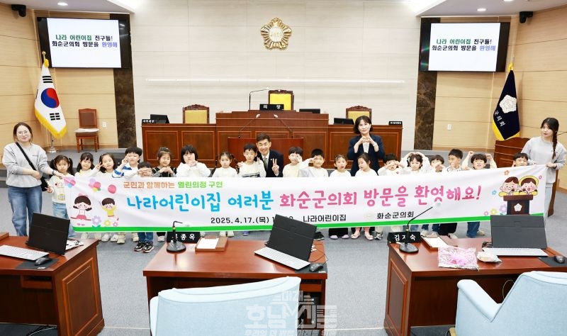 화순군의회(의장 오형열)는 17일 화순읍 나라어린이집 원생과 인솔교사등 22명이 의회를 방문하여, 본회의장과 의회시설을 견학했다고 밝혔다.
