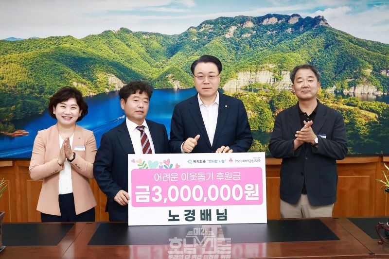 이십곡리1구 이장 노경배 씨가 최근 화순군청에 어려운 이웃을 돕기 위한 성금 300만 원을 기부해 지역 사회에 따뜻한 울림을 전하고 있다.