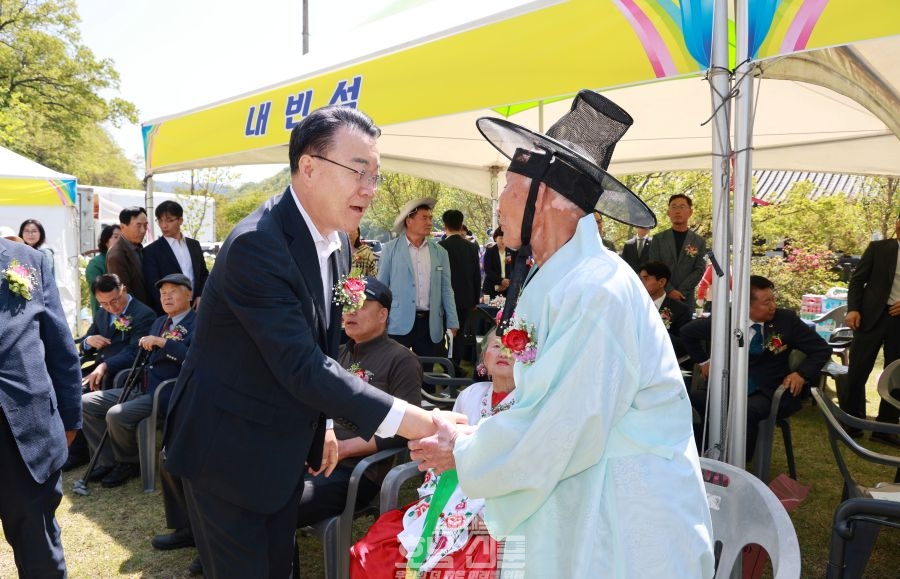 장수상 수상자 안심2리 이시우(94세) 어르신과 야사1리 최병순(93세) 어르신을 사인교(가마)에 태우고 입장하였으며, 최종대 이서면장과 손홍규 번영회장이 함께 잔을 올리며 만수무강을 기원했다.