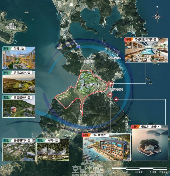 국비와 지방비가 투입되는 공공부문은 복합해양레저타운, 해양관광전시체험관, 해양관광 플로팅마리나 등 첨단 기술이 접목된 해양레저관광 인프라로 구성된다.