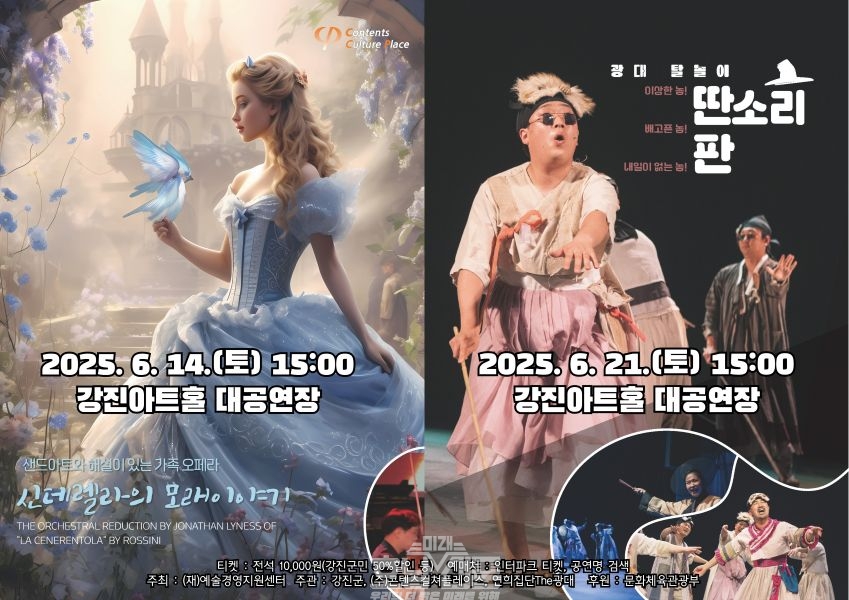 강진아트홀은 오는 6월 14일 상연되는 ‘신데렐라의 모래이야기’에 샌드아트 무료 체험부스와 유료 예매자 선착순 50명을 대상으로 신데렐라 퍼즐 증정 이벤트를 진행하고 이어 21일 ‘딴소리 판’ 공연 현장에서는 암행‘거’사 라이브 포토존 등을 운영하며 현장을 찾는 관광객에게 색다른 즐거움을 제공할 예정이다.