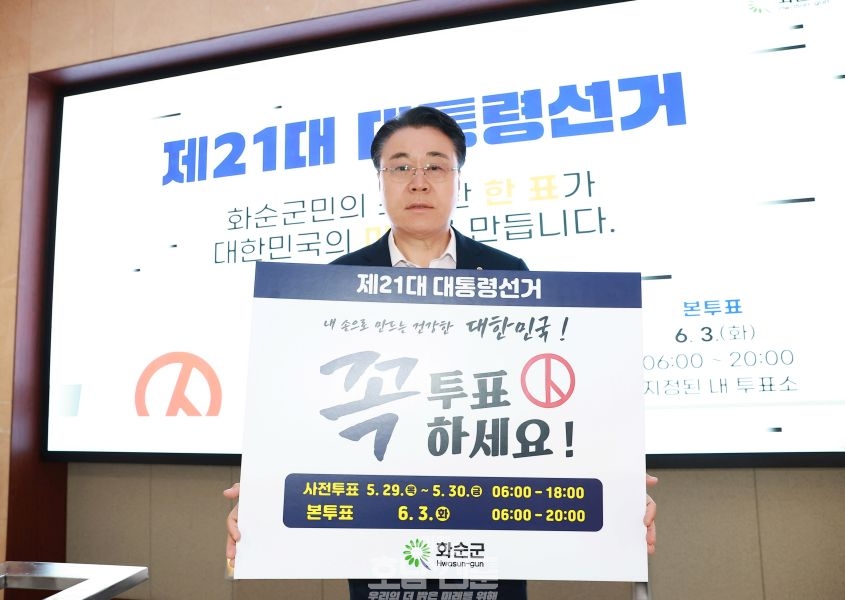 구복규 화순군수는 “공정한 선거와 책임 있는 투표권 행사가 우리 사회의 신뢰를 높이는 기반이며, 대한민국의 미래를 결정짓는 중요한 수단이다.”라며, “군민 모두가 소중한 한 표를 행사할 수 있도록 행정적 지원과 홍보에 최선을 다하겠다”라고 밝혔다.