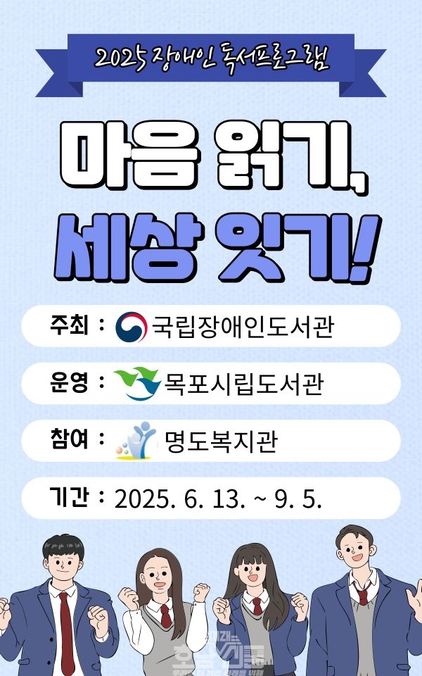 목포시립도서관(관장 최진수)이 국립장애인도서관이 주최한 ‘2025년 장애인 독서문화 프로그램’ 공모사업에 선정되어, 오는 6월부터 명도복지관과 협력해 발달장애 청소년을 위한 독서문화 프로그램을 운영한다.