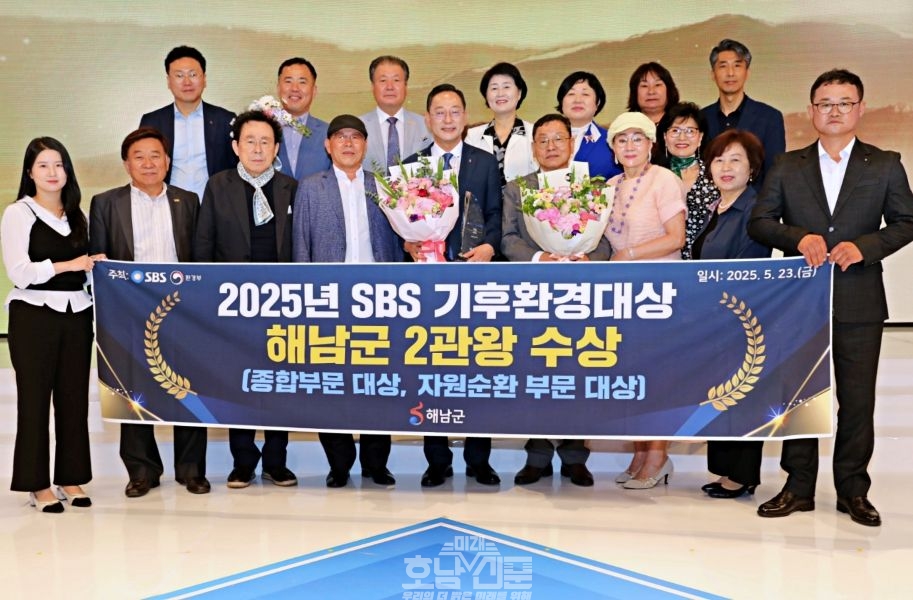 해남군이 SBS와 환경부에서 공동 주최하는 2025년 기후환경대상을 수상했다.