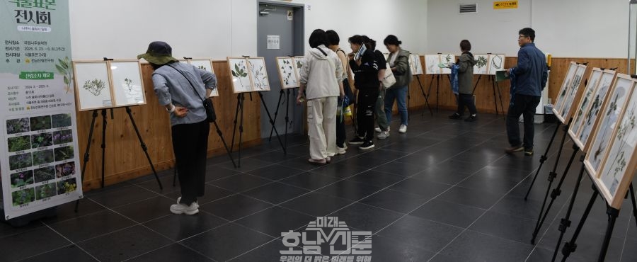 국립나주숲체원과 협조해 진행되는 이번 전시회에선 지역 식물에 대한 이해를 돕기 위해 탐사로 수집된 식물 중 흰털괭이눈 등 특산식물 6종과 옥녀꽃대 등 희귀식물 4종 등 24점을 선보인다.