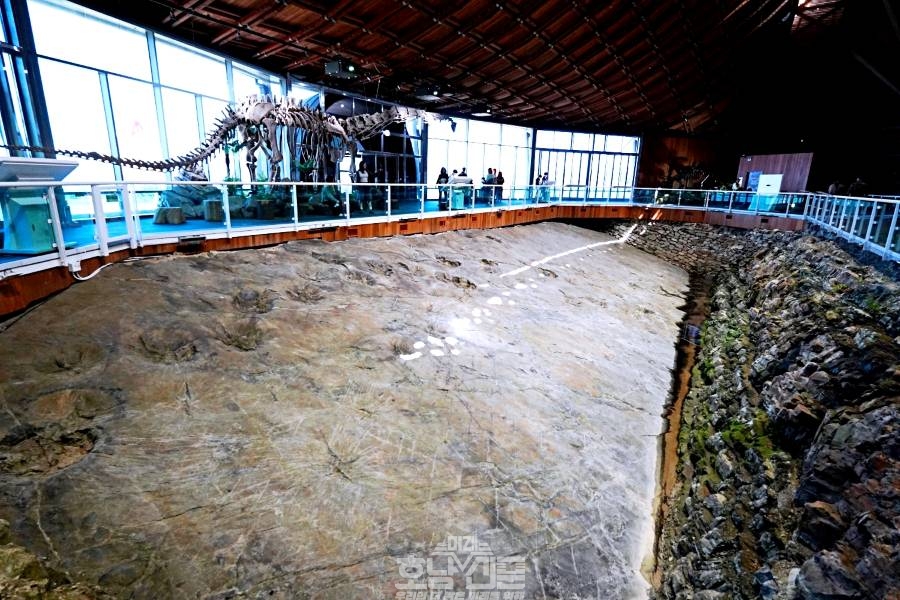 해남공룡박물관만이 가지고 있는 특별한 점은 실제하는 공룡발자국을 바로 눈 앞에서 관람할 수 있다는 점이다. 해남공룡박물관 일원 호수 주변 5km에 이르는 공룡 화석지는 내륙에 위치한 국내 최대 규모 화석지로 살아있는 현장 교과서이다. 주요 화석지에는 조각류 공룡, 익룡·조류, 대형 공룡 등 다양한 공룡 발자국을 보존하고 있는 3개의 보호각이 조성돼 있어 8,000만년 전 백악기의 감동을 직접 실감할 수 있다.