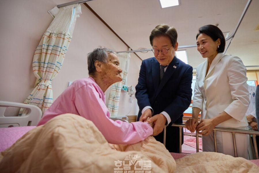 이재명 대통령과 부인 김혜경 여사가 25일 전남 고흥군 국립 소록도병원을 방문해 한센인 환자를 위로하고 있다. 대통령실 제공