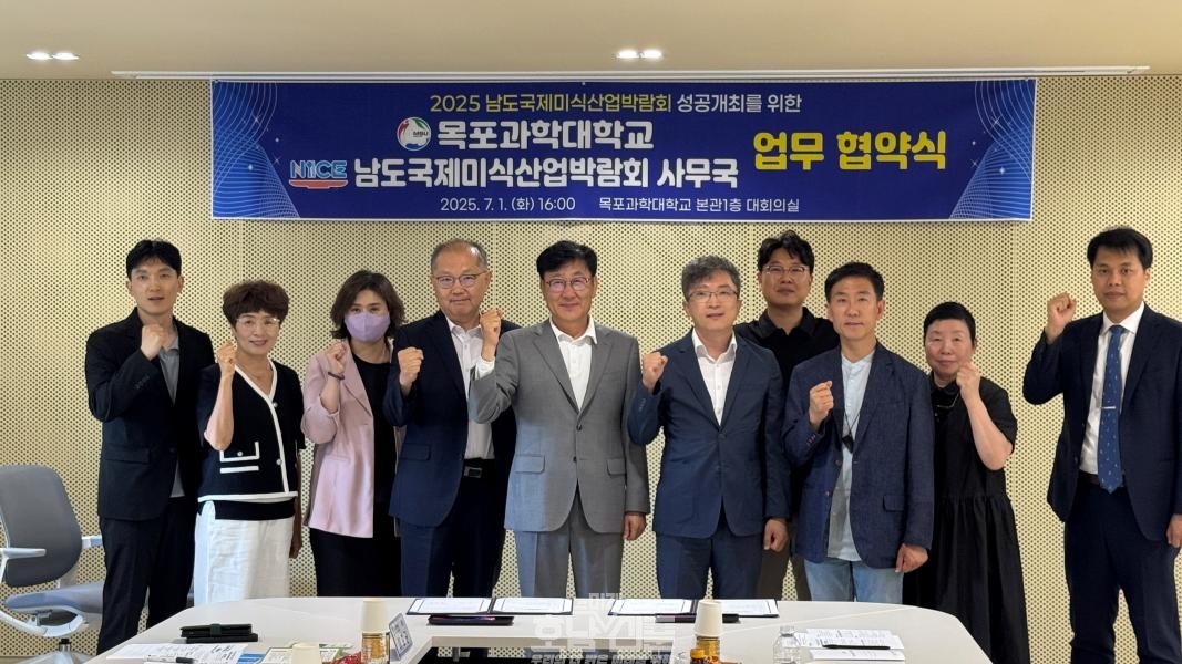 남도국제미식산업박람회 사무국이 지난 1일 목포과학대학교(총장 이호균)와 업무협약(MOU)을 하고, 청년 인재 양성과 지역 식품 산업의 성장을 위한 본격적인 협력에 나섰다.